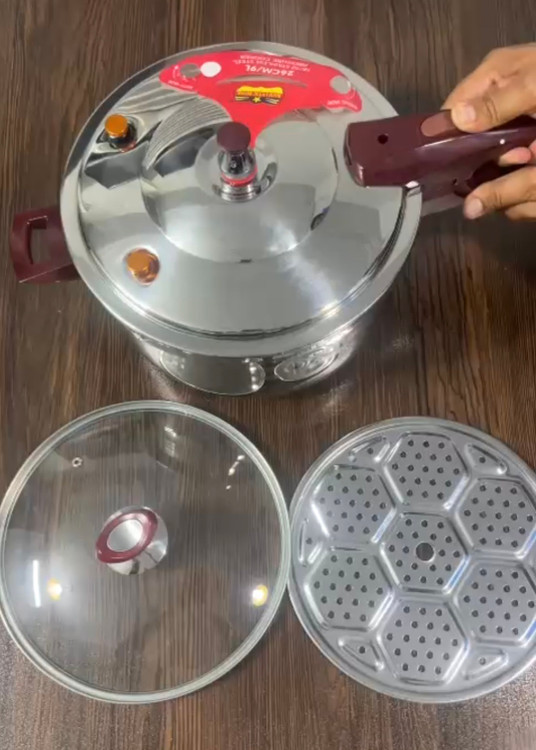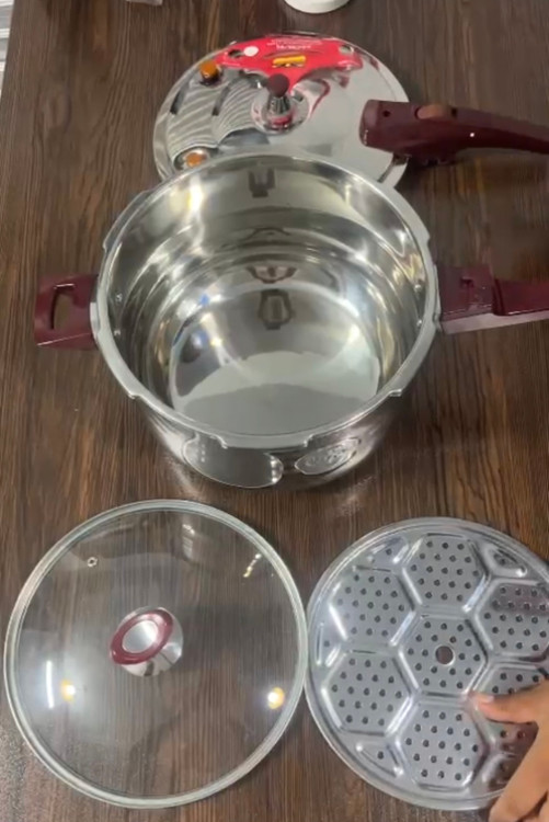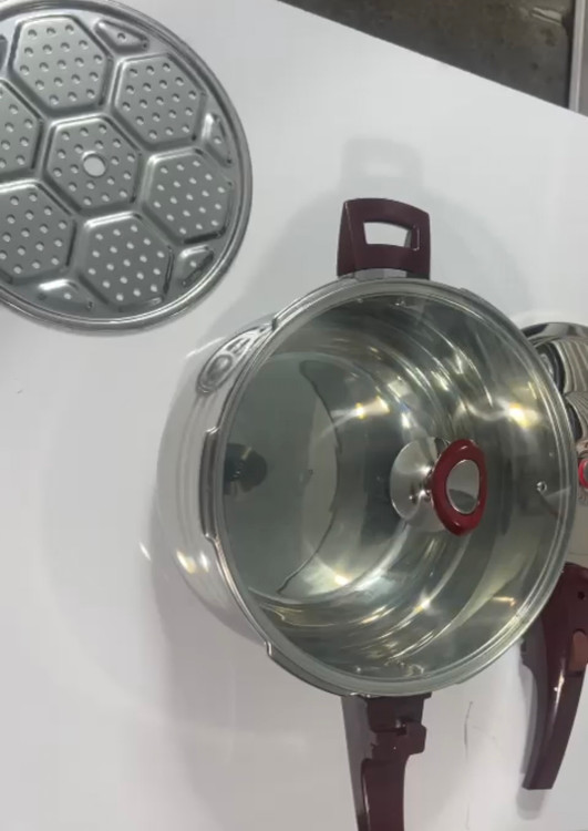 بهمراه لوارم جانبی: درب پیرکس و توری بخارپز و پایه توری